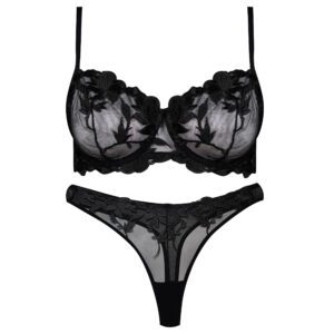 ست شورت و سوتین زنانه مدل فنردار مشکی با گل آبی برتا کد 5100-2420-BT