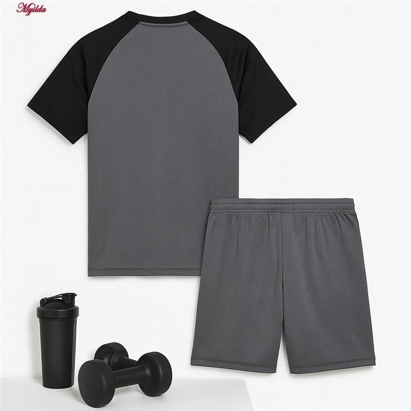 ست تیشرت آستین کوتاه و شلوارک ورزشی مردانه رنگ طوسی مدل 5374-806