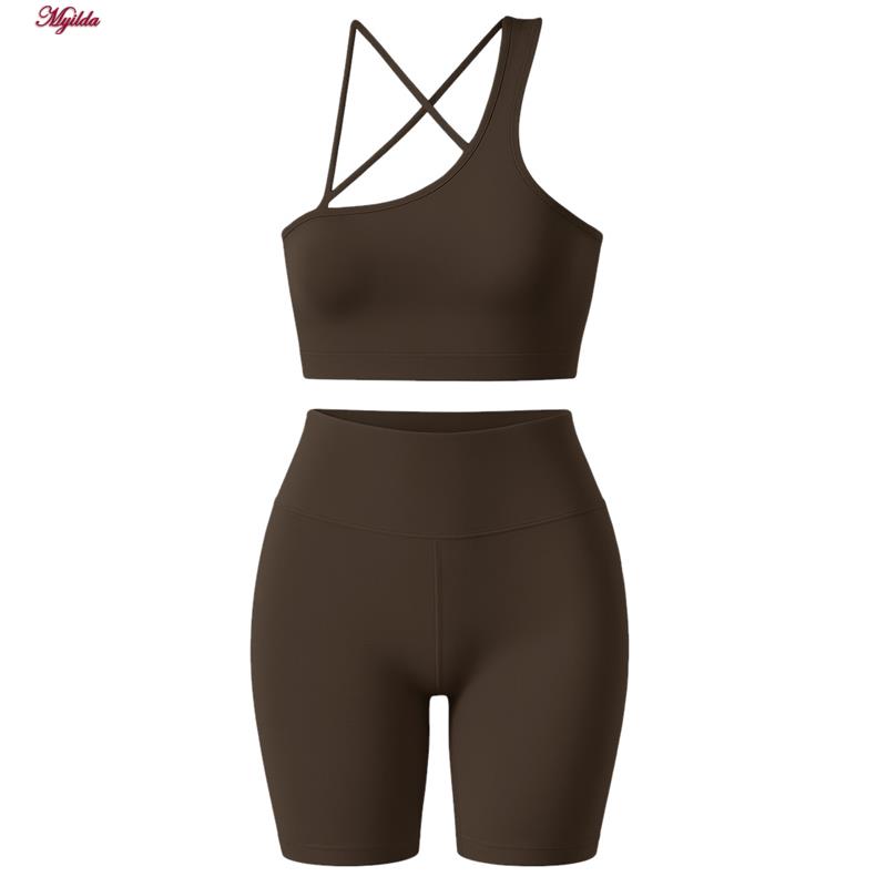 ست نیمتنه و شلوارک ورزشی زنانه رنگ قهوه ای ماییلدا مدل 5409-7106