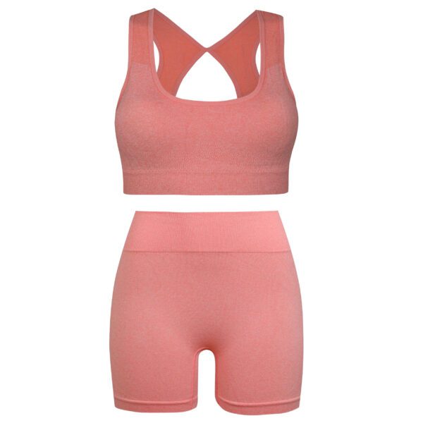 ست نیم تنه و شلوارک ورزشی زنانه ماییلدا مدل سیملس پشت چین دار پددار کد 5172 رنگ گلبهی