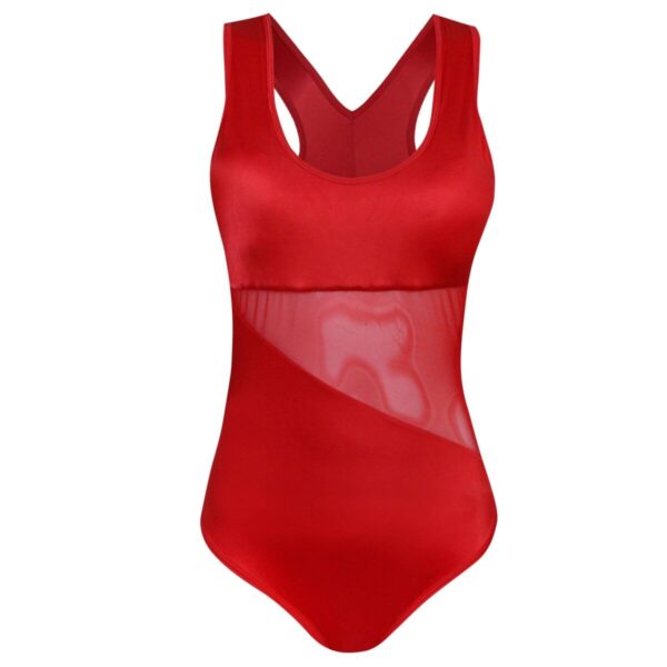 مایو زنانه یک تکه پددار توری رنگ قرمز کد 4229-705