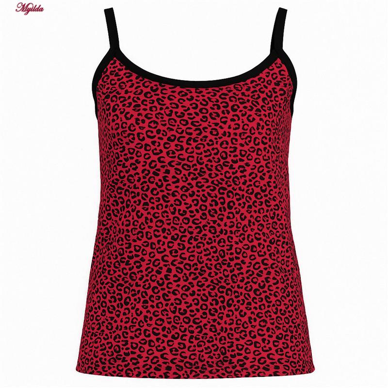 تاپ راحتی زنانه مدل پلنگی رنگ قرمز ماییلدا کد 5328-1