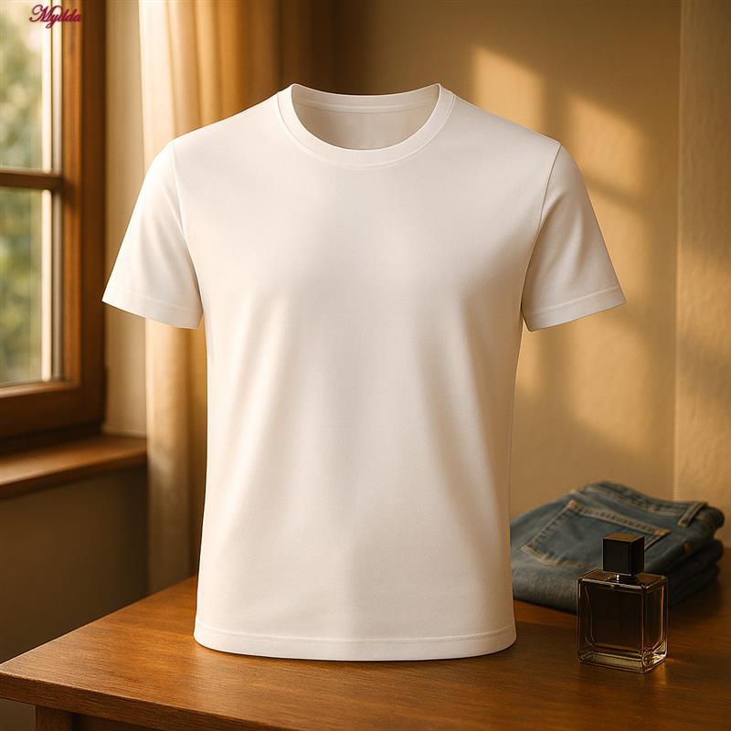 تی شرت آستین کوتاه مردانه مدل یقه گرد ساده رنگ سفید