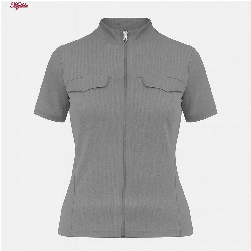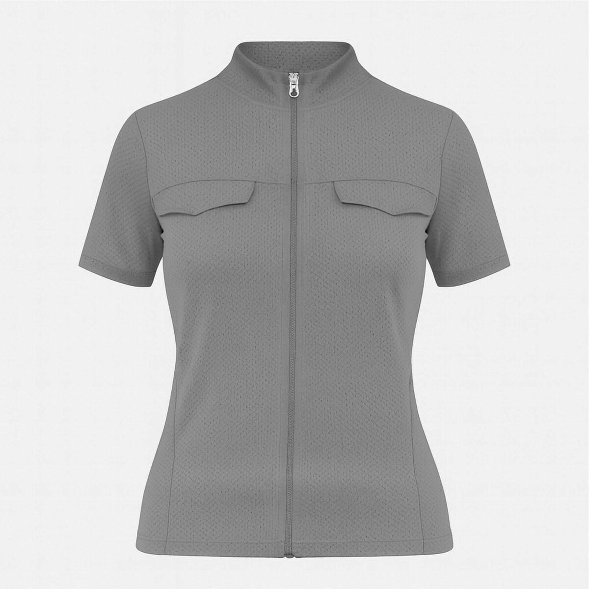 تیشرت ورزشی زنانه ماییلدا با طراحی زیپدار در قسمت جلو است که در رنگ های مختلف تولید شده. جنس پارچه سبک و دارای بافت ریز و سوراخدار برای تهویه بهتر هوا و کاهش تعریق است. یقه ایستاده و دو جیب نما در قسمت سینه به آن ظاهری اسپرت و مدرن میبخشند. آستین کوتاه و برش متناسب این تیشرت باعث راحتی و آزادی حرکت در فعالیتهای ورزشی یا روزمره میشود .
