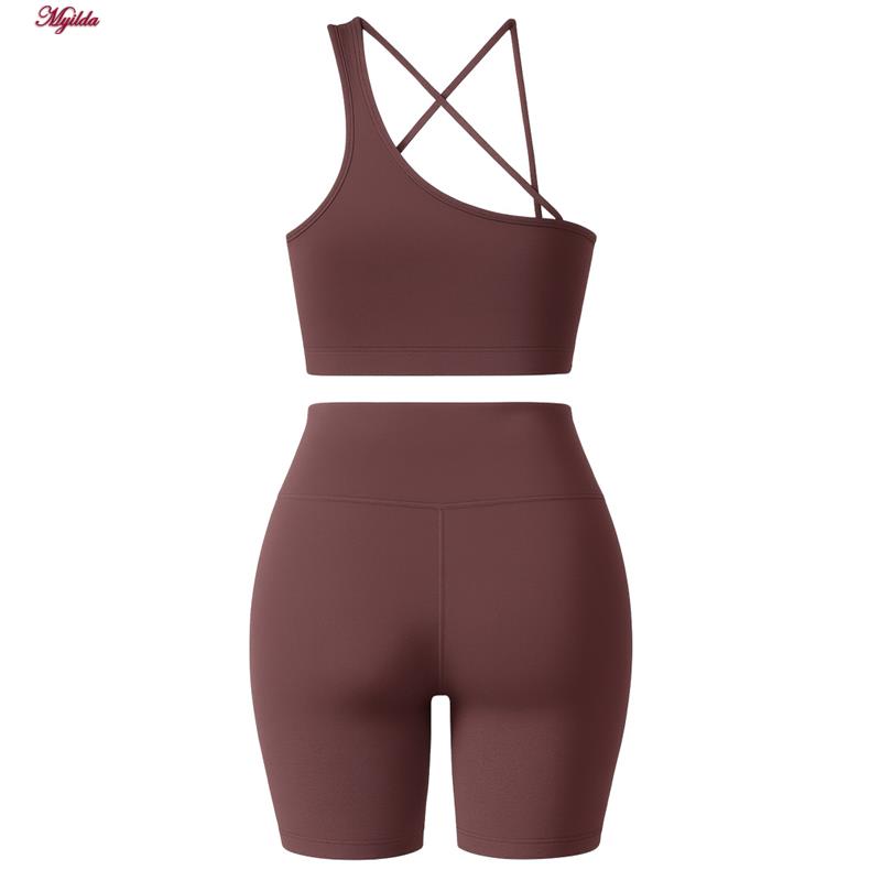 ست نیمتنه و شلوارک ورزشی زنانه رنگ کالباسی ماییلدا مدل 5409-7106