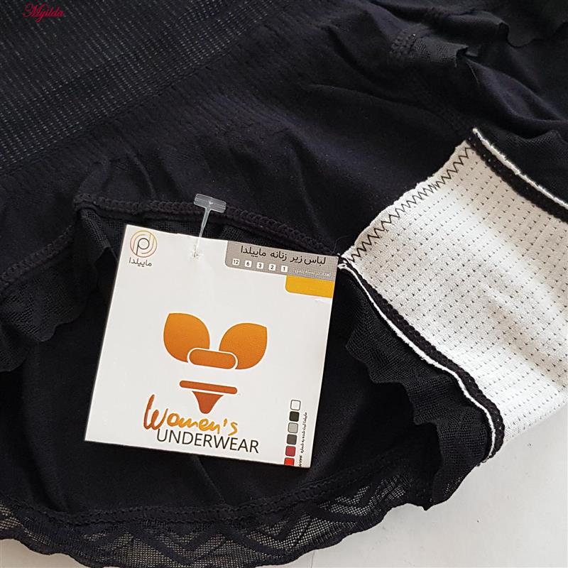 شورت گنی زنانه ماییلدا با طراحی یکسره که قسمت بالایی آن از بافت کشباف راهراه عمودی برای جمع کردن شکم و پهلوها ساخته شده است.