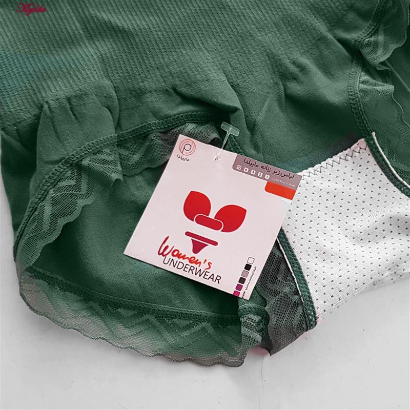 شورت گنی زنانه ماییلدا با طراحی یکسره که قسمت بالایی آن از بافت کشباف راهراه عمودی برای جمع کردن شکم و پهلوها ساخته شده است.
