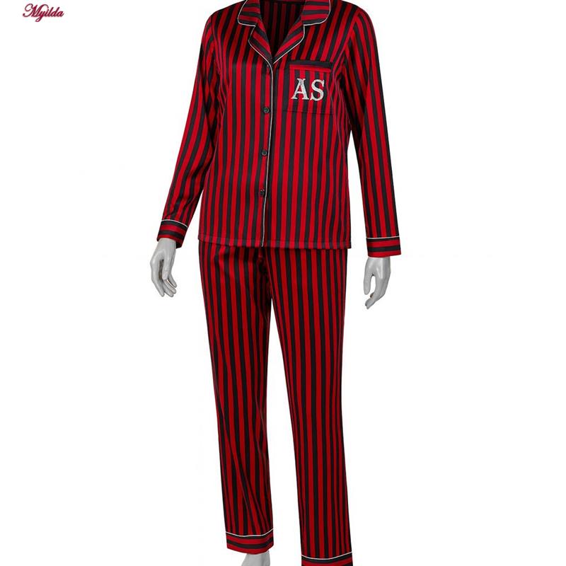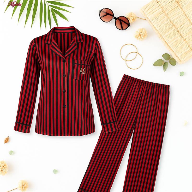 لباس خواب زنانه رنگ قرمز راه راه مدل 5377