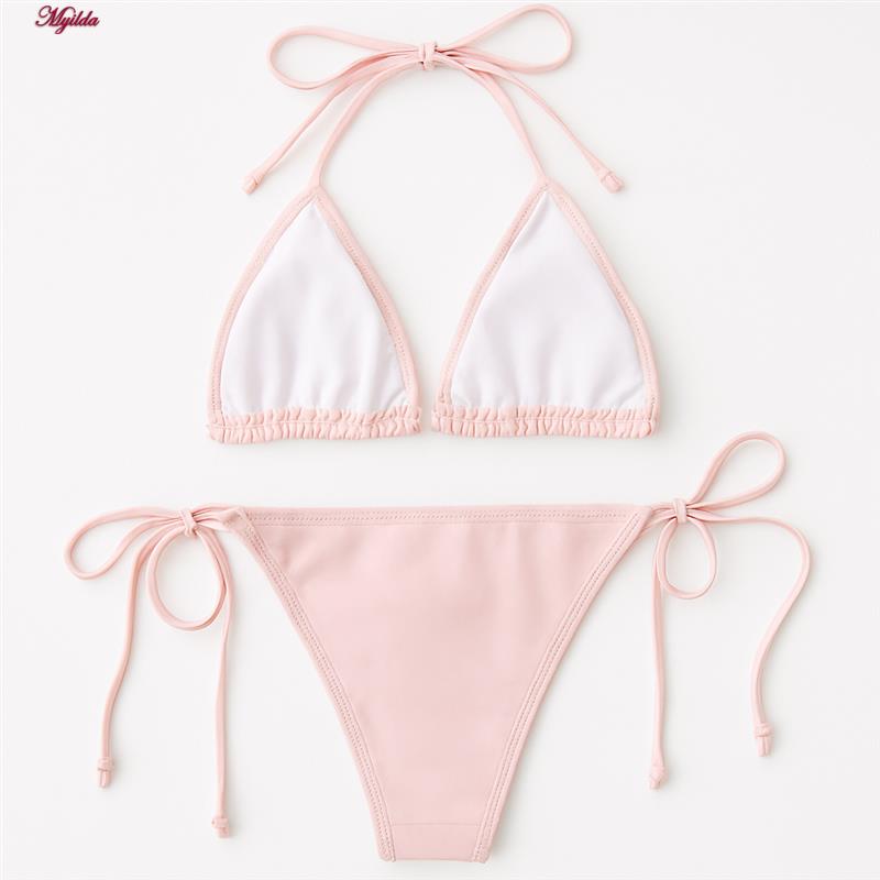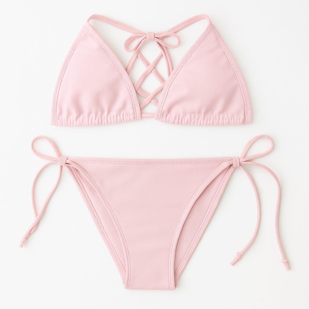 مایو دو تکه زنانه رنگ صورتی مدل h-1208
