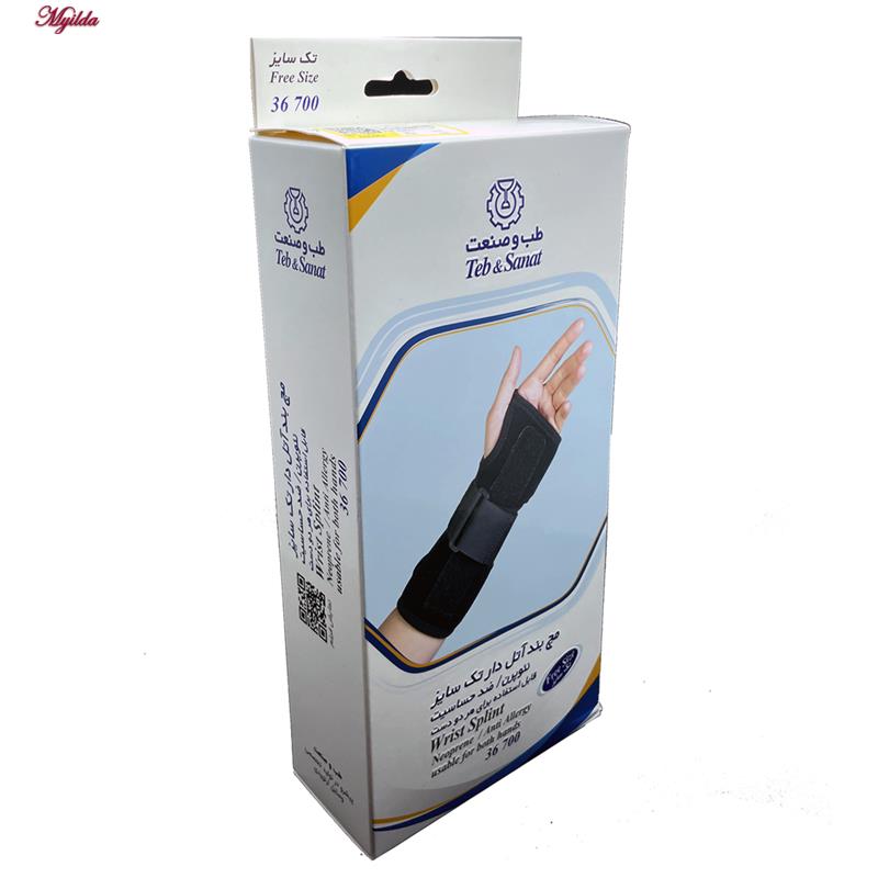 مچ‌بند طب و صنعت با استفاده از بهترین نوع نئوپرن وارداتی با پارچه ضد حساسیت تولید شده و علاوه بر ثابت نگه داشتن مچ دست در وضعیت خنثی (natural position) به دلیل وجود آتل‌های صاف و منحنی در پشت و کف دست، با ایجاد گرما، بالا بردن درجه حرارت موضعی، افزایش متابولیسم و گردش خون روند بهبود را سرعت بخشیده و تورم، درد و خشکی نسوج در عضلات، تاندون و لیگامان‌های مچ دست را از بین می‌برد.