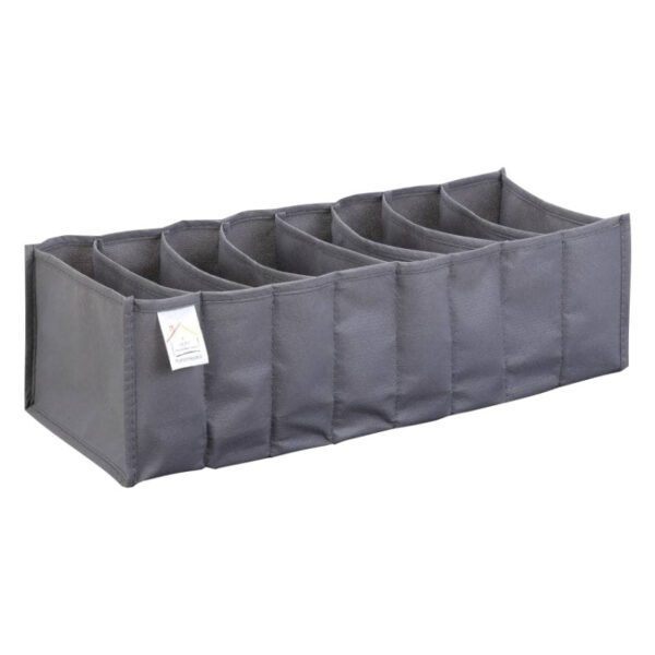 این ارگانیزر در سایز مدیوم دارای 8 جیب و با ابعاد 24x12x38 می باشد. – در رنگ طوسی تیره قسمت انتهایی و زیرین هر جیب به کف پارچه اصلی دوخته شده است. |