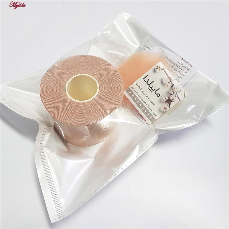 این چسب لیفت سینه با طول 5 متر و پهنای 5 سانتی متر می باشد و ماده ی تشکیل دهنده ی آن از 95 درصد پنبه و 5 درصد فیبر کشسان مصنوعی تهیه شده است. این ترکیب دارای منافذی است که هوا را به منافذ پوست که در زیر چسب قرار می گیرد می رساند و از تعرق پوست جلوگیری می کند. این بسته بندی دارای دو عدد محافظ سیلیکونی است که ضد حساسیت و قابل شست و شو است استحکام این نوار چسب بالاست و عرق کردن، شنا کردن و یا تکان خوردن های شدید منجر به جدا شدن چسب از بدن نمی شود. چسب لیفت بسیار کشسان است و تقریبا تا 2 برابر طول اولیه ی خود قابلیت کشیده شدن دارد و به هنگام استفاده از آن احساس نمی کنید که چیزی به بدن چسبیده است. جهت استفاده از چسب باید به اندازه ی مورد نیاز و متناسب با سایز سینه ی خود از آن برش بزنید و پس از هر بار استفاده آن را دور بیاندازید . نوار چسب به رنگ پوست می باشد و به راحتی نمی توان تفاوت آن با رنگ پوست را تشخیص داد. این ویژگی باعث می شود که بتوان از آن در زیر لباس های نازک، تاپ ها، لباس عروس ، لباس شنا و … استفاده کرد. این مدل چسب لیفت سینه می تواند حتی سنگین ترین سینه ها را به سمت بالا هل دهد و به آن ها فرم می دهد تا به فرم دلخواه خود برسید. از این چسب می توانید برای پوشاندن عضلات پا یا دیگر نقاط بدن هنگام تمرین نیز استفاده کنید.